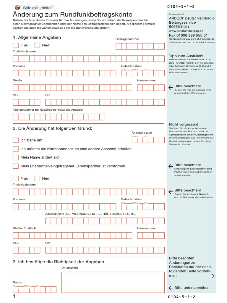 Der Rundfunkbeitrag Daten Andern